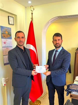 Yusuf Yurt İmam-hatip Ortaokulunda düzenlenen Filistin Hayır Çarşısında toplanan 41.720 TL Okul Müdürü Musa Kuş tarafından Türkiye Diyanet Vakfı Altınyayla Şube Başkanı