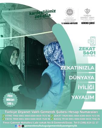 Ramazan ayında iyiliği yaymak için Türkiye Diyanet Vakfı Gemerek Şubesi olarak sizleri hayra davet ediyoruz.