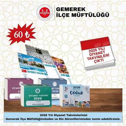 Diyanet İşleri Başkanlığımız tarafından dini, milli ve kültürel içeriklerle özel olarak hazırlanan 2026 Yılı Diyanet Takvimlerimizi ve Diyanet Çocuk Takvimlerimizi