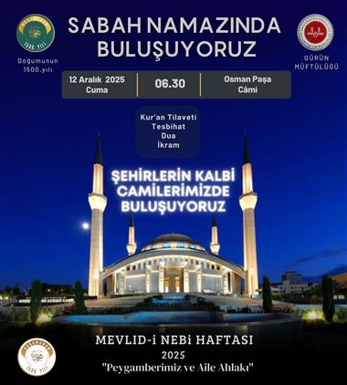 Şehirlerin kalbi camilerimizde buluşuyoruz projesi kapsamında bu hafta sabah namazında Osman Paşa Caminde biraraya geliyoruz.Tüm Halkımız Davetlidir
