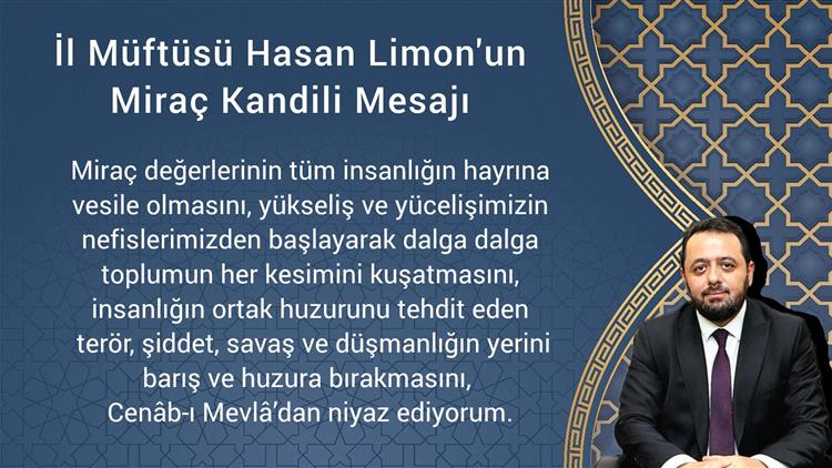 İlMüftüsü Hasan Limon Miraç Kandilimünasebetiyle bir mesaj yayımladı.