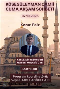 📌Kösesüleyman camimizde uygulanmaya devam eden "Cami Sohbetleri" programı kapsamında bu haftaki konuğumuz Din Hizmetleri Uzmanımız Mustafa CAN hocamızdı.