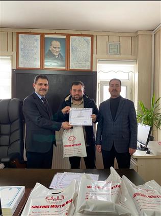Sayın Müftümüz YILMAZ'ın, "Başarı ve temenni" dileklerinin ardından hocalarımıza "Başarı Belgesi, Kuran-ı Kerim ve İslam'da Tebliğ ve İrşad adlı Kitap" hediye edilerek program son buldu.